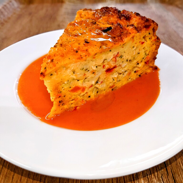 7種の野菜とモッツァレラチーズをたっぷり加えた野菜の甘味がしみ込んだふわふわのオムレツです。