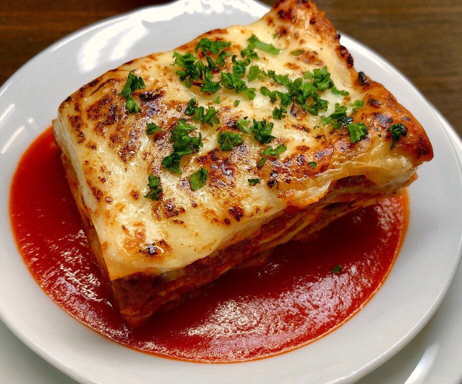 野菜だけでラグーをつくり、ラザニア、チーズと一緒に重ね焼きにしました。
