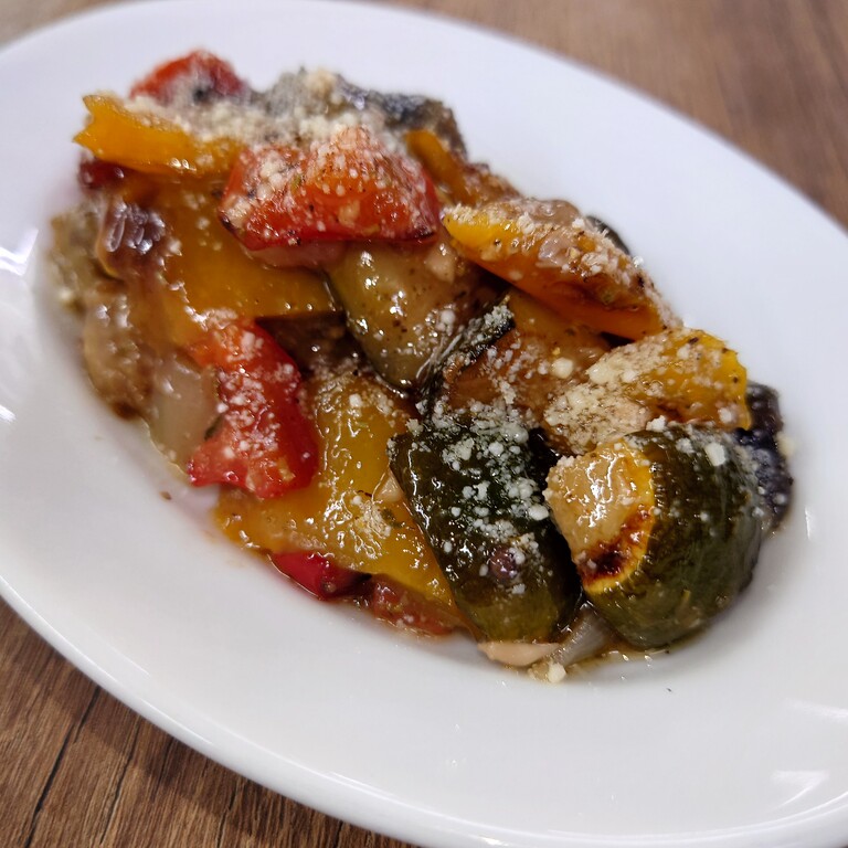 なす、ズッキーニ、パプリカ、トマト、玉ねぎをローストしてから煮込むことによって、野菜の旨みが凝縮した味わいになります。