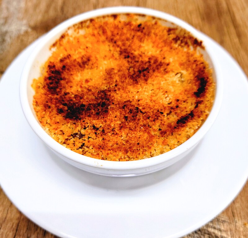 仕上げにニンニク風味のチーズパン粉をかけて、焼き上げます。