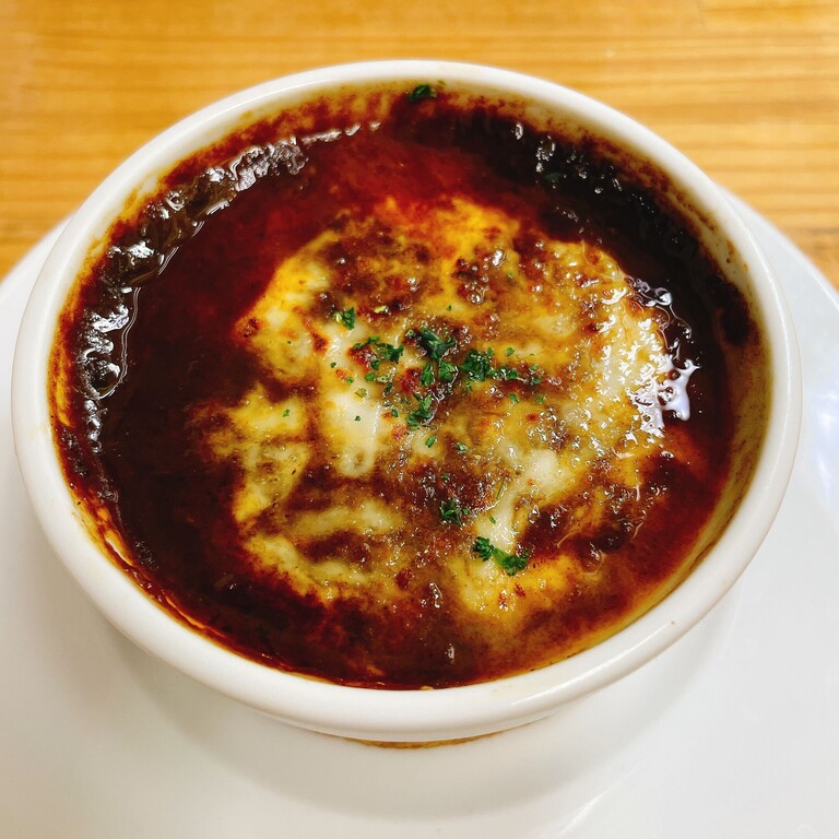 フルーツをたっぷり使用した中辛でスパイスのきいたオリジナルカレーにホワイトソースをからめたターメリックライスがよく合います。
